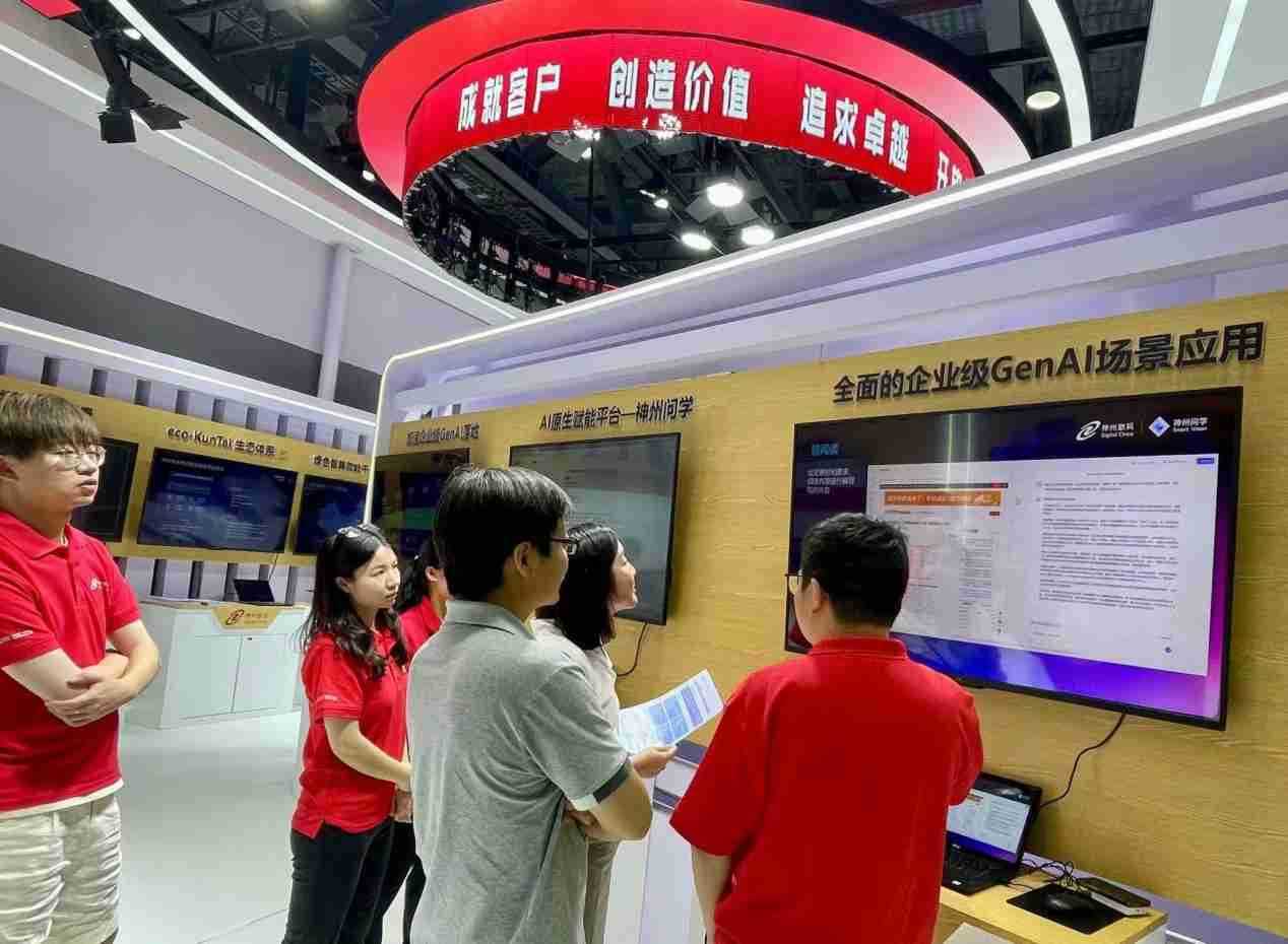 现场展示了企业级AI原生赋能平台红豆钱包问学,,,打通GenAl落地企业的算力、、、模型、、知识、、应用四大要素,,,,综合解决GenAI工程在选、、练、、、、用、、、管四大环节的问题,,旨在为企业的数智化转型提供全套的GenAl智能应用工程流水线。。。。