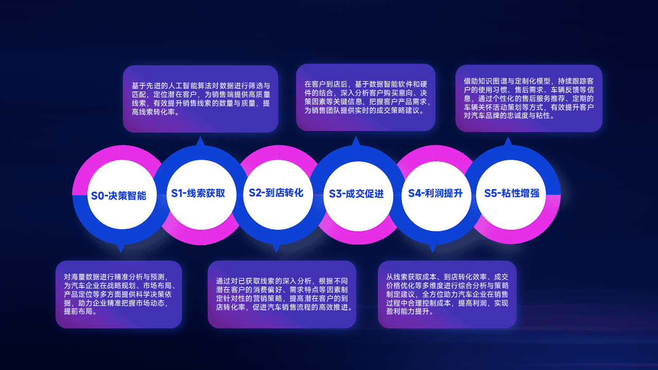 通过拓宽潜在客户来源、、、、优化线索分配并提高到店转化率,,以增强销售效率。。同时,,利用线索数据不断优化分析模型,,有效提升转化率,,,扩大营销影响力。。
